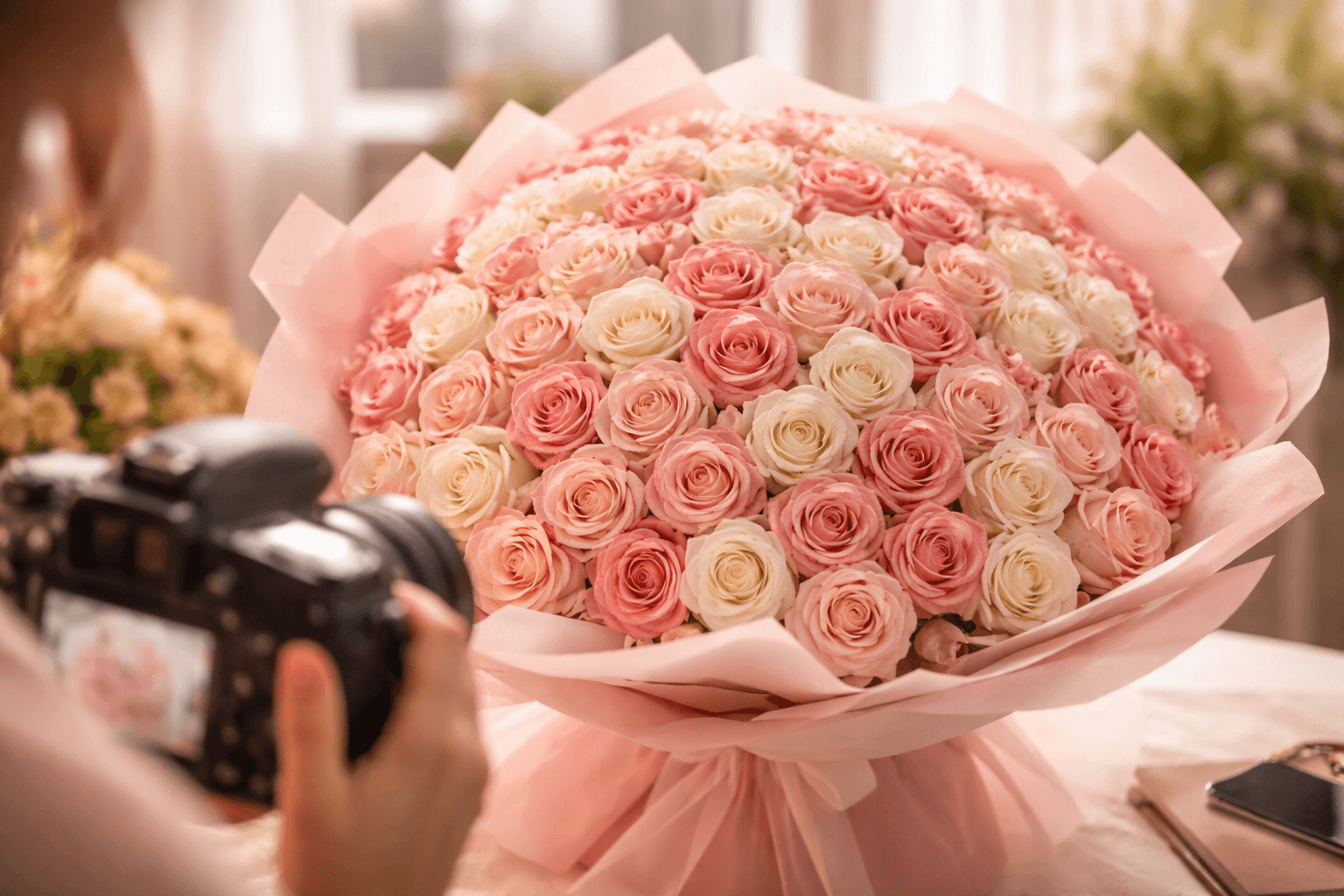 Lumina moale face buchetul să pară mai fin și mai scump