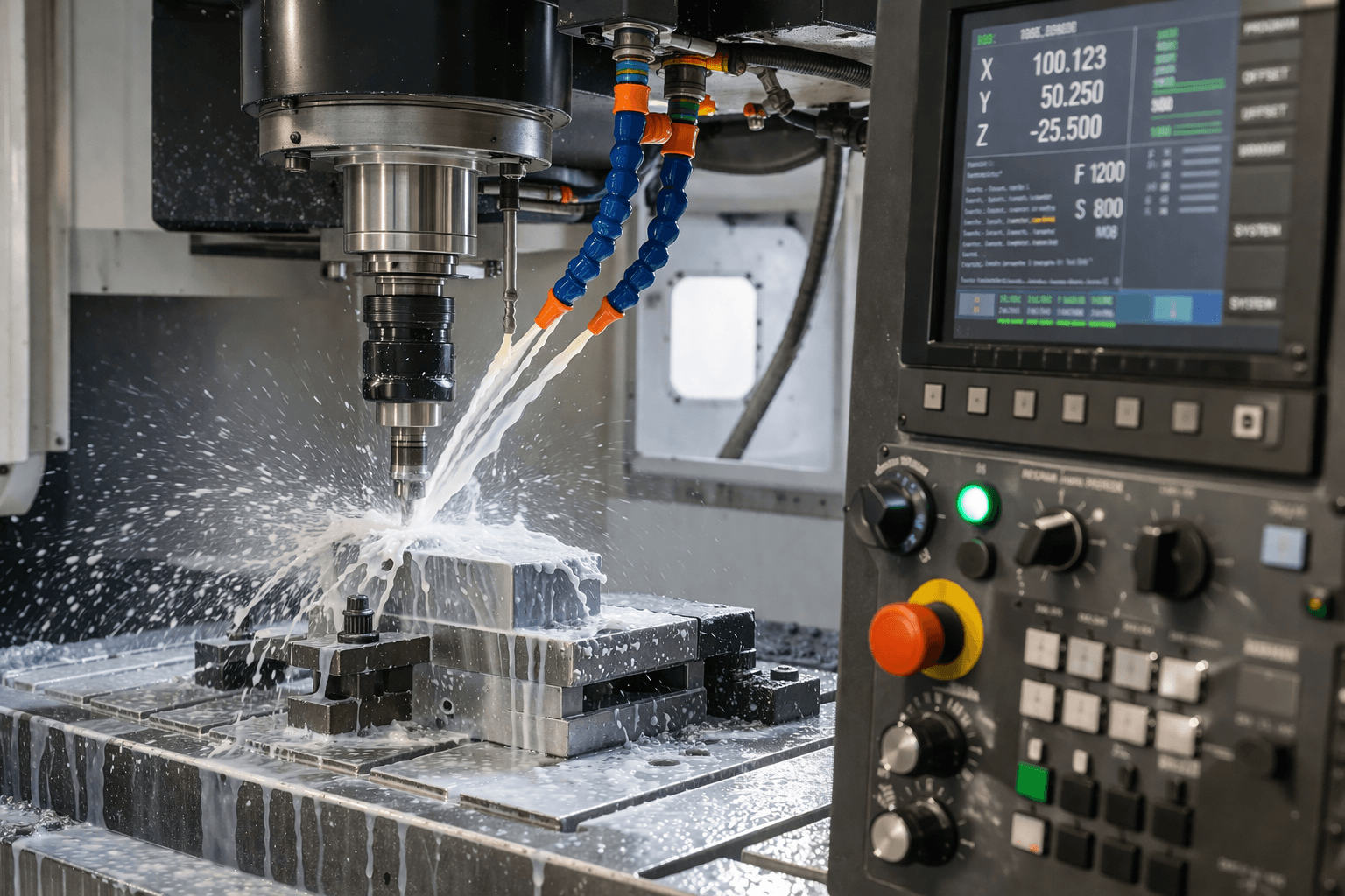 Mulți își imaginează că mai mult lichid înseamnă automat mai bine. Nu neapărat. Dacă fluidul nu ajunge la interfața dintre sculă și material, poți face o baie frumoasă în incintă fără să rezolvi problema reală. De aceea, la mașinile bune, duzele, programarea și tipul sculei trebuie să vorbească aceeași limbă.